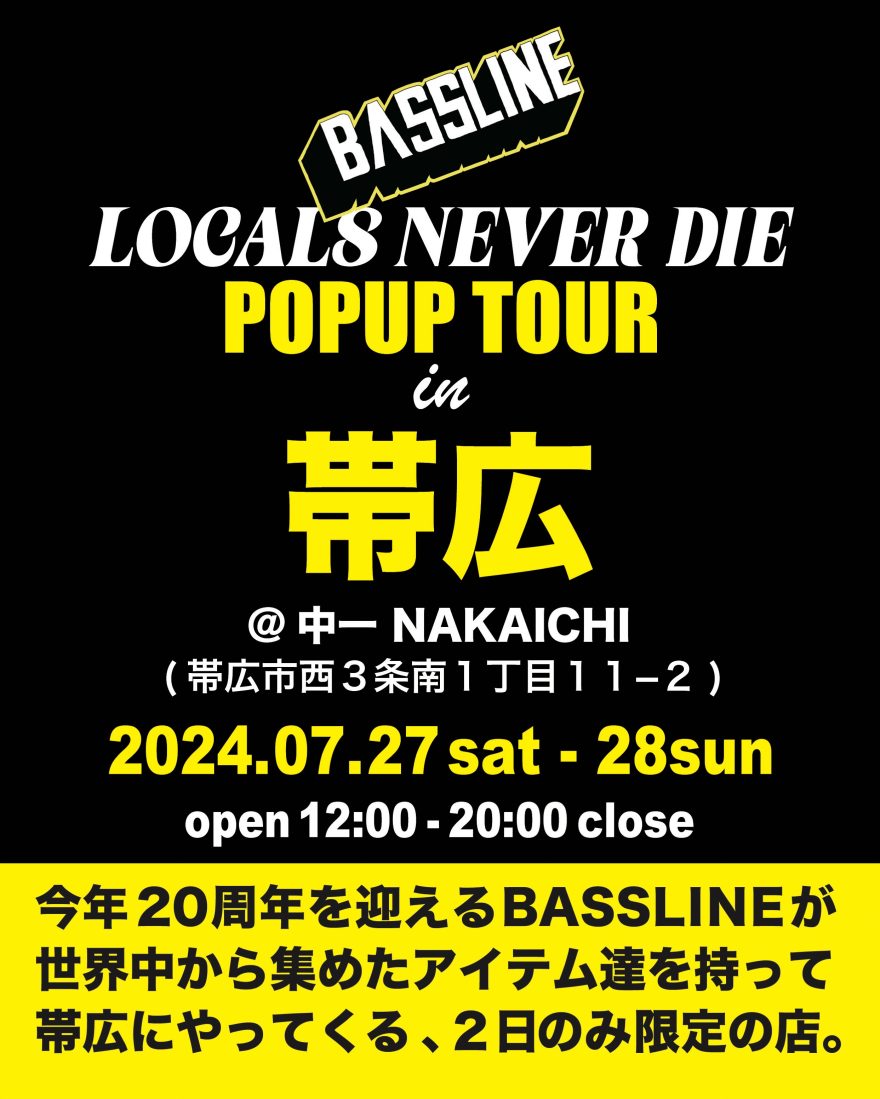 【終了】BASSLINE LOCALS NEVER DIE POPUP TPUR in帯広 2024.7.27(土)~28(日) 12:00-20:00